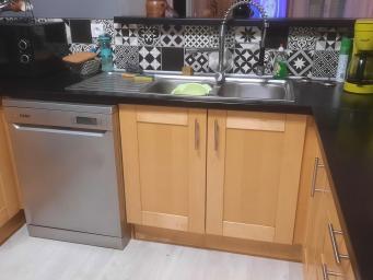 arrière - cuisine pour rangement. Salon lumineux convivial.