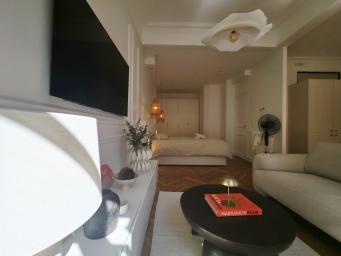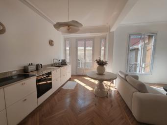 Profitez d'un logement prestigieux et central, décoré avec goût et de très beaux matériaux. L'appartement se compose d'un couloir desservant une cuisine aménagée et équipée ouverte sur un séjour très lumineux, une chambre ouverte et un grand placard, une salle de douche, un wc séparé. Il se situe au 2ème étage avec ascenseur, et à proximité du centre ville et des transports pour une visite de Nice optimale. Un séjour réussi garanti !Les animaux sont strictement interdits